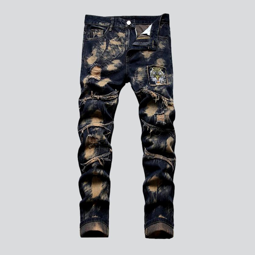 Dale un toque rock and roll a tu guardarropa con nuestros jeans para hombre con bordado de cabeza de tigre de nuestra colección de otoño de 2023: ¡una versión urbana del denim que mantendrá tu tendencia firmemente arraigada en el pulso moderno de hoy!