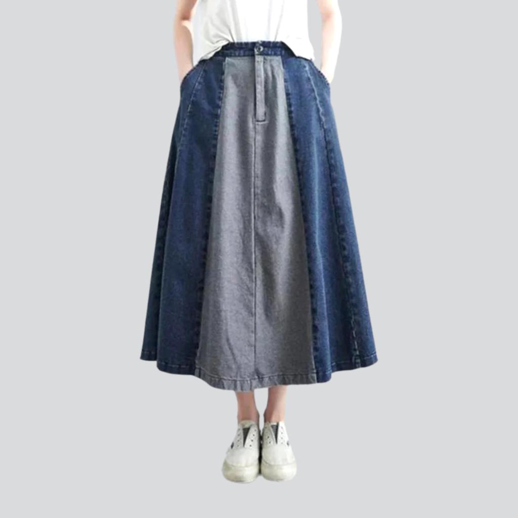 Presentamos la moderna falda vaquera con bloques de color de nuestra colección Primavera-Verano 2023: ¡la combinación perfecta de estilo, patchwork, corte entallado y cintura alta! Confeccionada con mezclilla premium y un exclusivo cierre de cremallera y botón, estas faldas están diseñadas para que tu look destaque entre la multitud.