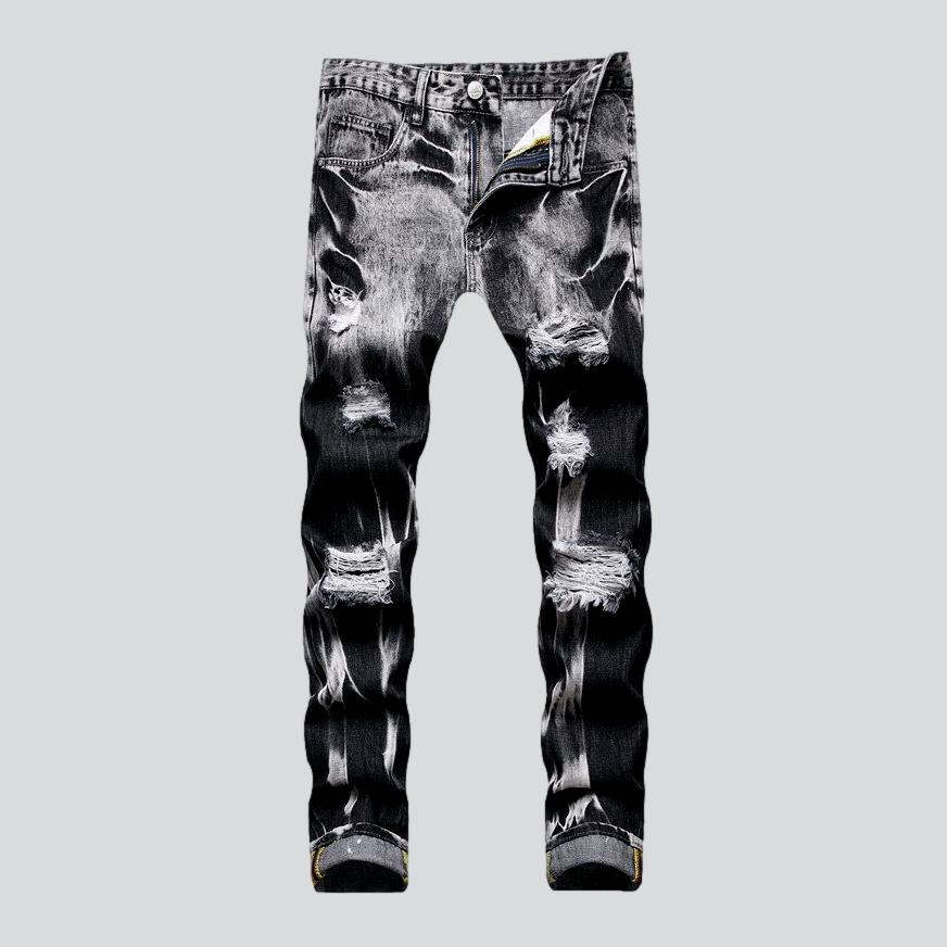Estos jeans de estilo urbano son el accesorio perfecto para el hombre moderno. Con un elegante diseño de cintura media, elegantes detalles tie-dye y un corte ajustado, destacarás entre la multitud. Con cierre de cremallera y botón, puedes ajustar el ajuste fácilmente a tu gusto y el detalle elástico te asegurará comodidad todo el día.