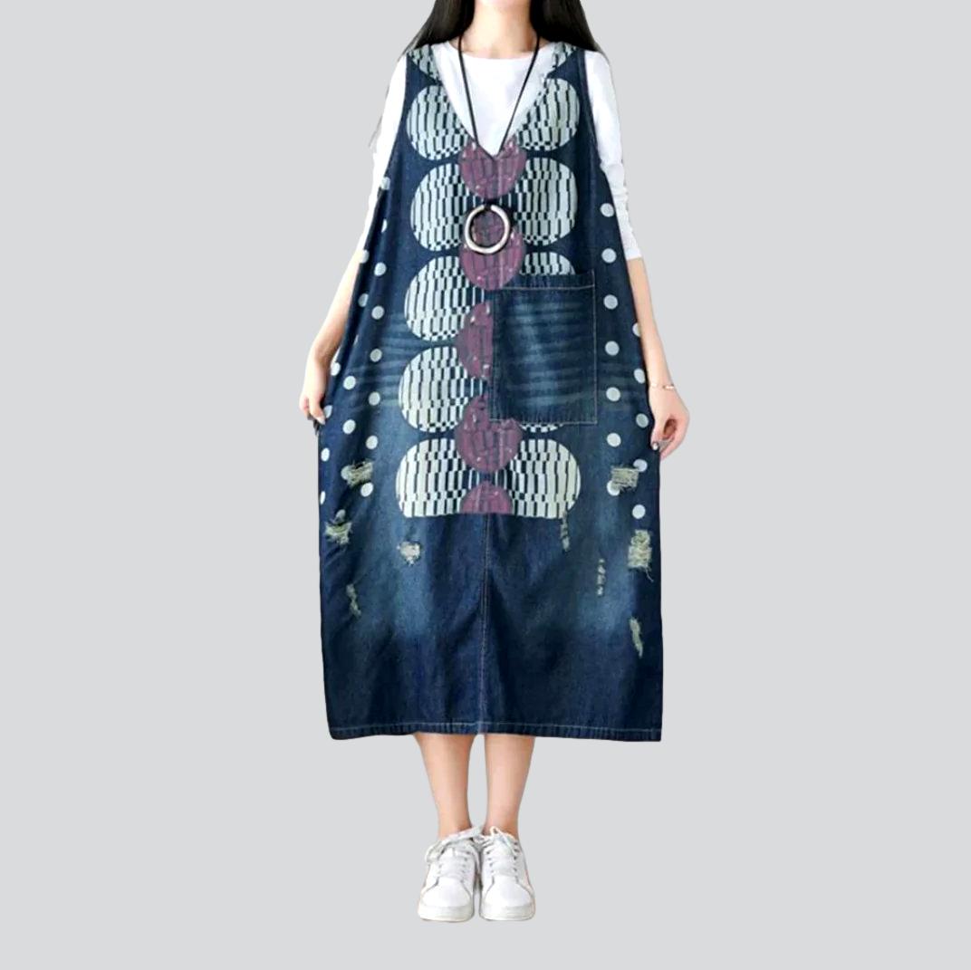 Este vestido es un clásico de la casa. Confeccionado con mezclilla de primera calidad para un look elegante y duradero. Presenta un diseño pintado distintivo, una silueta larga y un cierre de tirador que garantiza un ajuste ceñido. Con su estilo urbano y relajado, ¡cautivará a donde quiera que vayas!