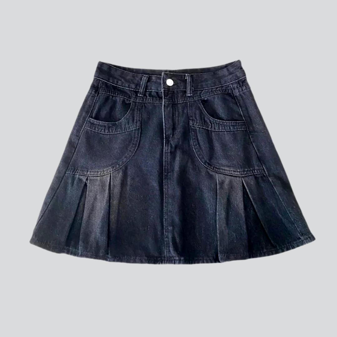 Dale un toque retro a tu look con nuestra falda vaquera plisada negra vintage de la colección Primavera-Verano 2023. Con cintura alta, cierre de cremallera y botón, y un estilo Y2K atemporal, esta falda es la elección perfecta para cualquier fashionista que busque combinar la elegancia moderna con un toque vintage.