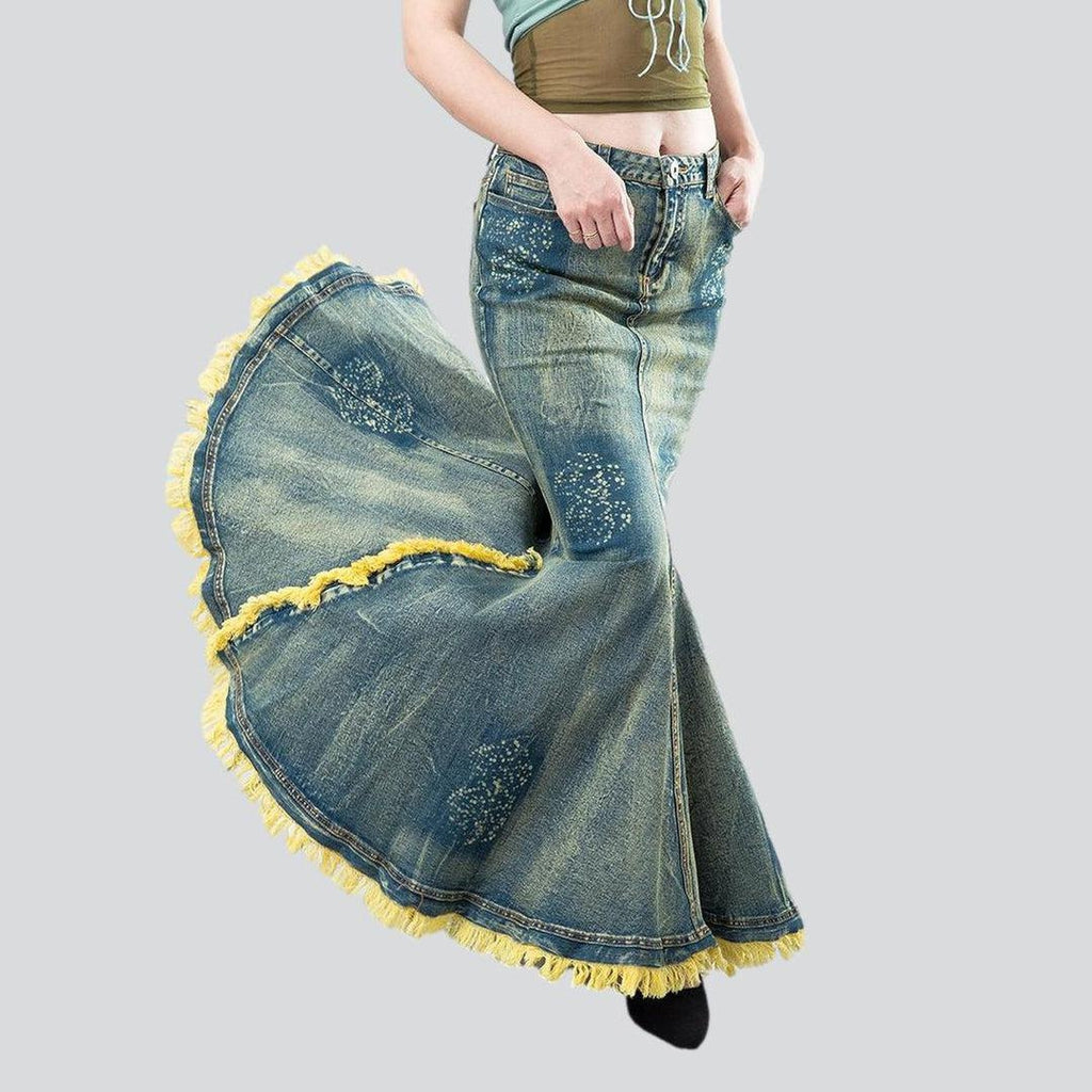 Combina el pasado con el presente con nuestra falda vaquera sirena de inspiración vintage de nuestra colección de otoño 2023. Esta falda de cintura alta está confeccionada con un cierre clásico de cremallera y botón. Te permite lucir elegante y a la vez sacar tu estilo noventero interior.