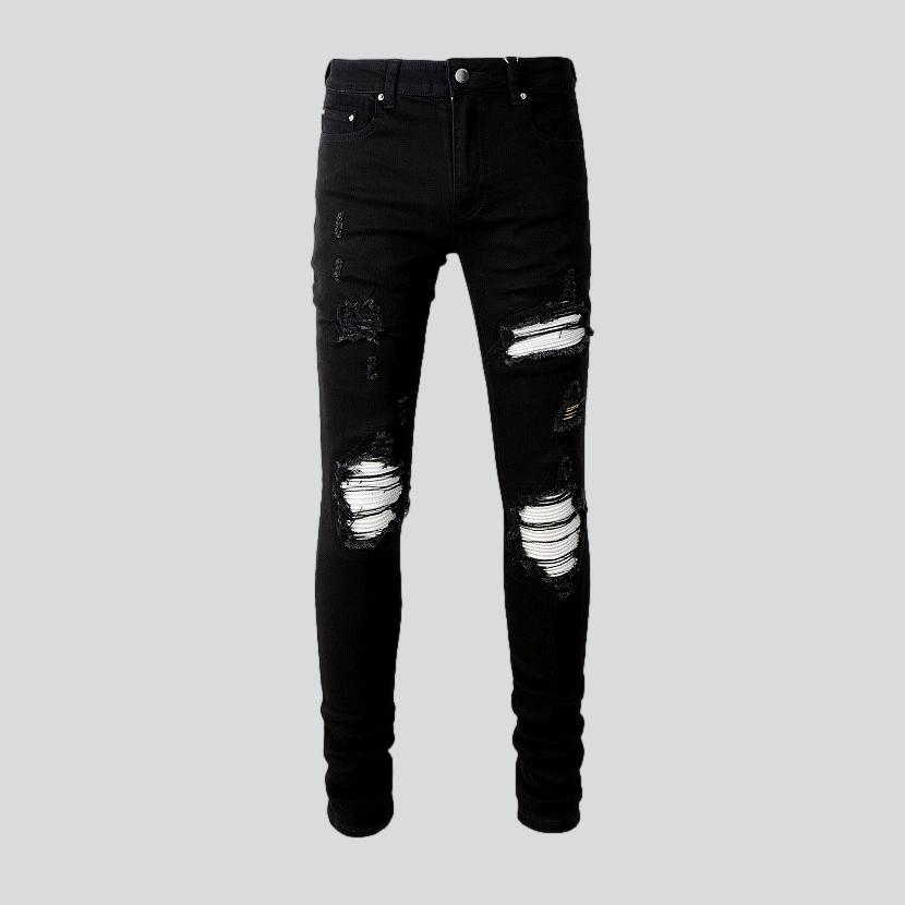 Presentamos la colección de otoño de 2023 White Patch Ripped Biker Jeans: ¡una combinación única de tendencia relajada y sofisticación de la moda!