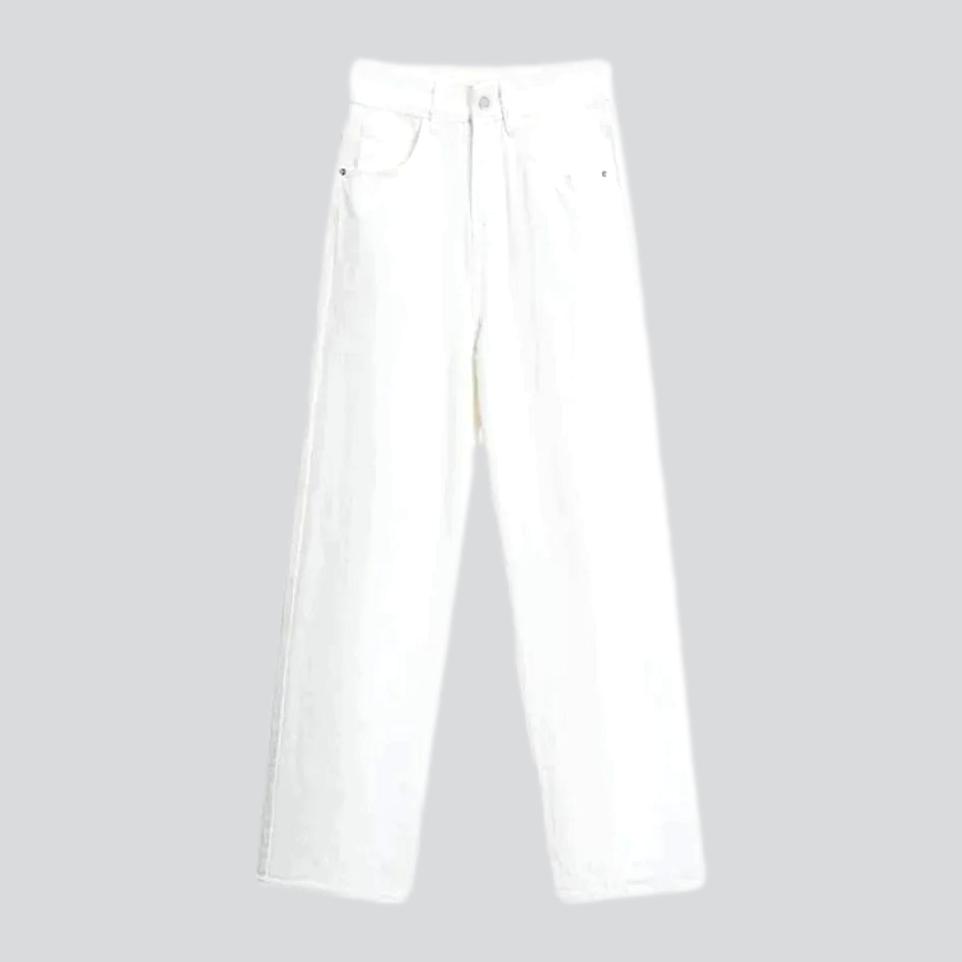 Celebre el comienzo del verano con nuestros jeans blancos estilo años 90, monocromáticos, rectos, de cintura alta y con cierre de cremallera y botón de nuestra colección de verano 2023: ¡la combinación perfecta de estilo vintage y moderno!