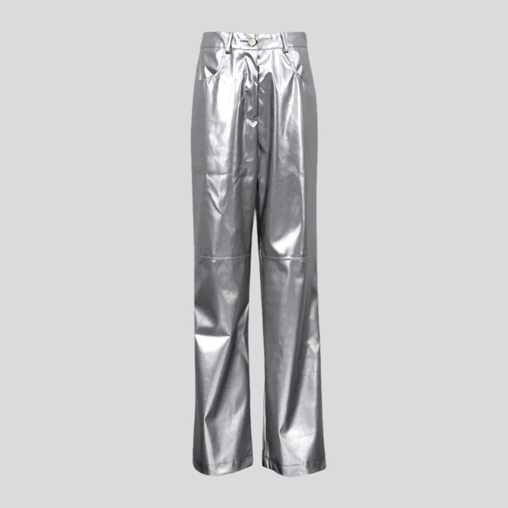 Con un llamativo estampado plateado, estos jeans están diseñados para quienes buscan lo mejor y vanguardistas. Su corte ancho, cintura alta y cierre de cremallera y botón sin duda destacarán en cualquier ocasión, ya sea una salida informal o una gala de lujo.