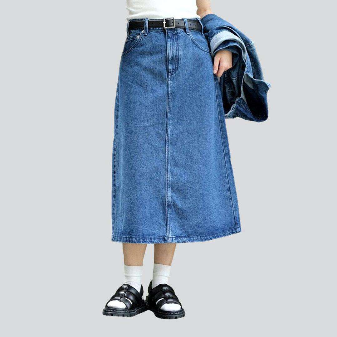 Introducing the 2023 Autumn Collection's A-Line Denim Long Skirt ââ‚?a timeless staple for the couture trendsetter!