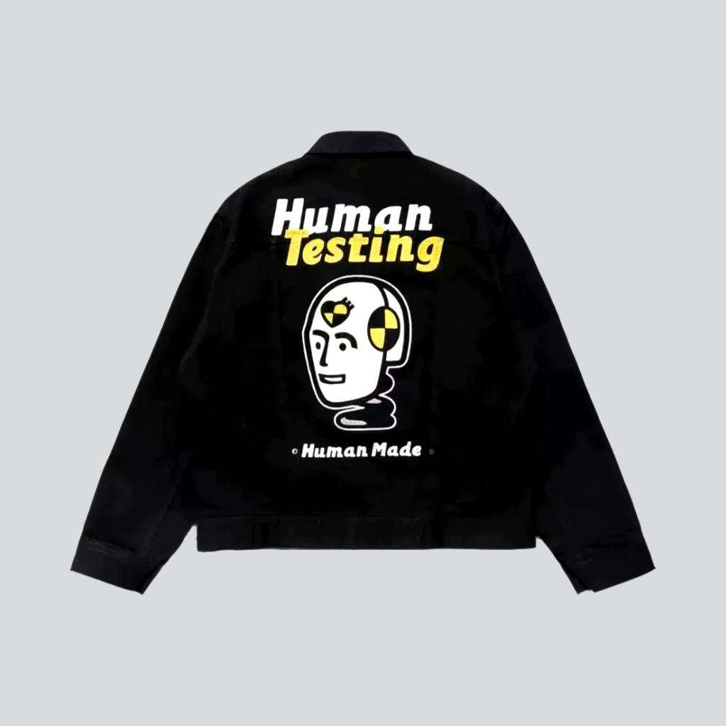 Introducing a traditional classic from our 2023 Spring-Summer Collection: the Back Robot Print Denim Jacket. This millennium trend large jacket is an ideal blend of traditional elegance and couture fashion. featuring a painted exterior. buttoned closure. and an exquisite zipper closure. For an street edge. it is finished with a unrefined hem that will demand attention with every sway and step.