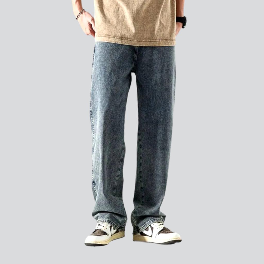 Introducing our 2023 Autumn Collection for men slouchy pebble-washed jeans in street style. These mid-waist jeans with zipper and button closure are the perfect combination of vintage and modern. delivering an effortless and timeless look.