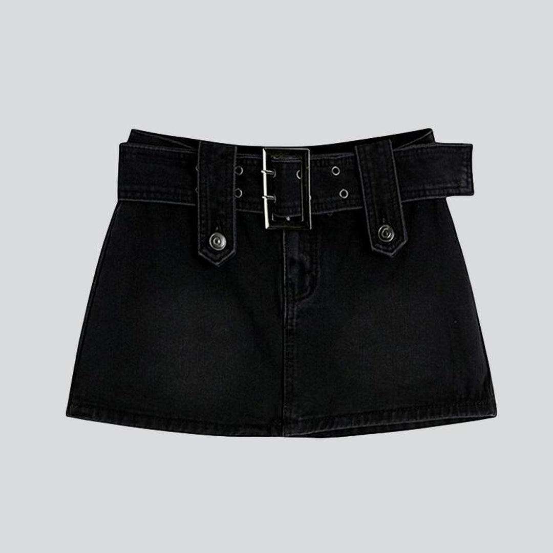 Make a bold style statement this summer with our 2023 Summer Collection black denim skirt with belt ââ‚?the ultimate '90s inspired fashion piece!