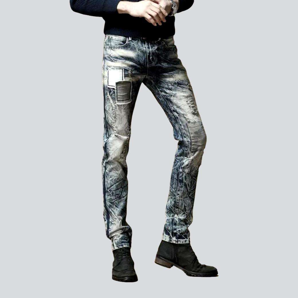 Bleach wash embroidery men jeans