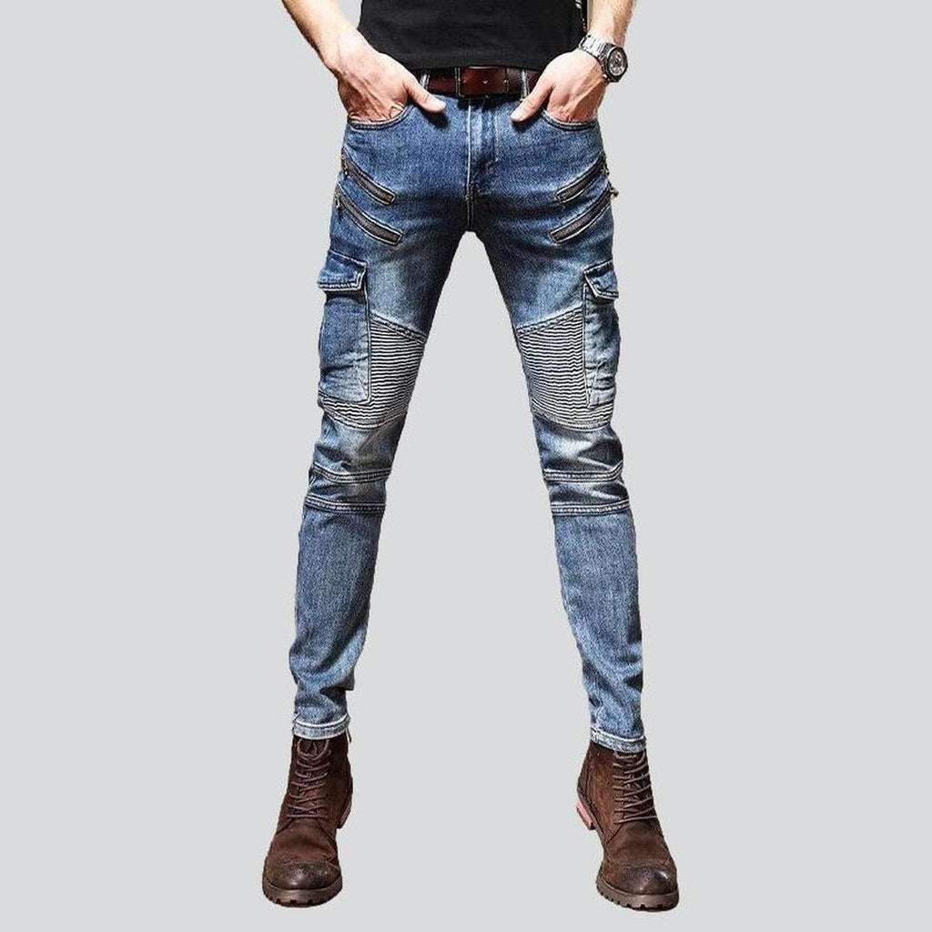 Cargo biker jeans with zippers