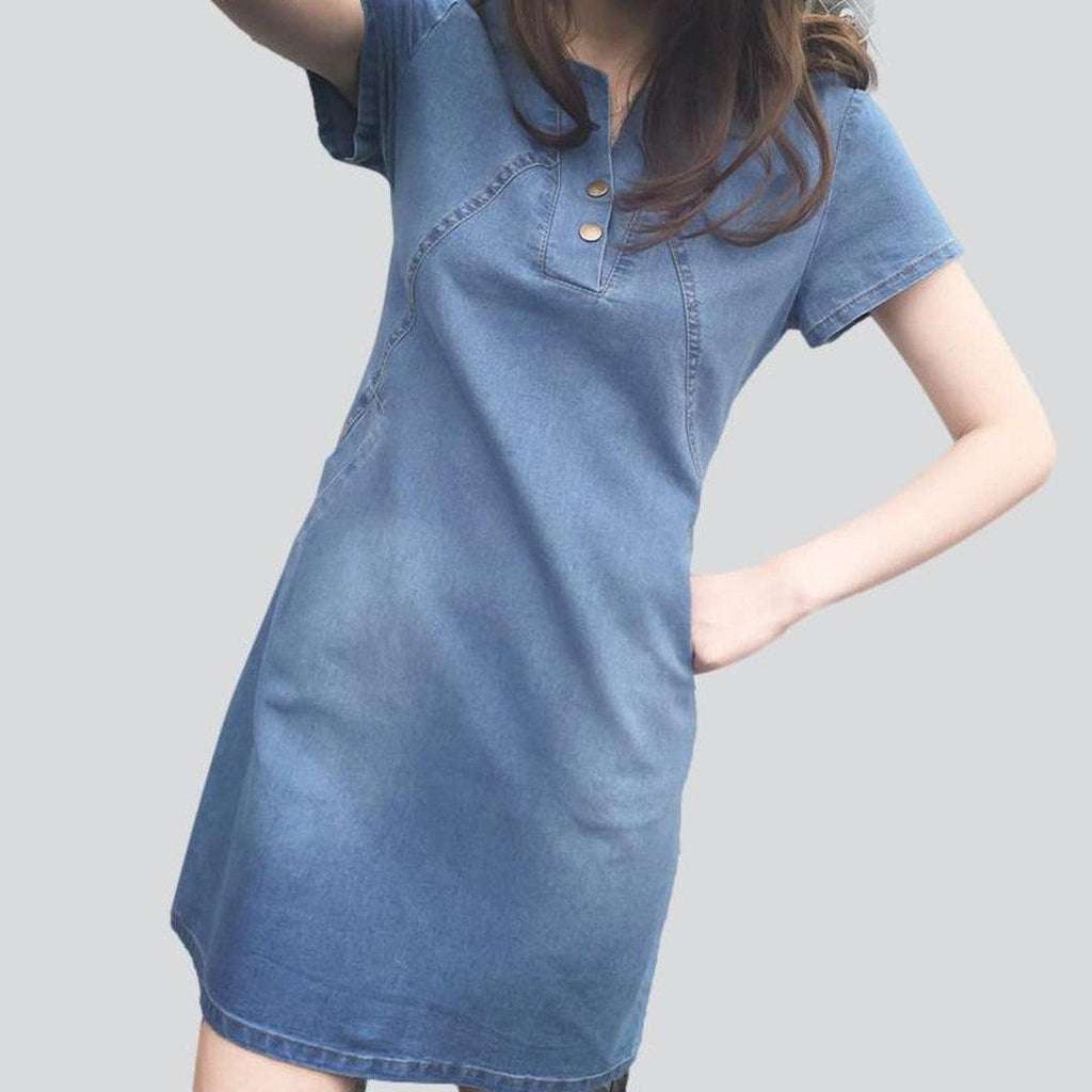 Faded memories. couture style the 2023 Spring-Summer Collection takes us back with its Informal Micro Denim Dress. Crafted with a medium wash. pull-on closure. and proven fit. this dress brings us back to a time of innocence and simplicity.