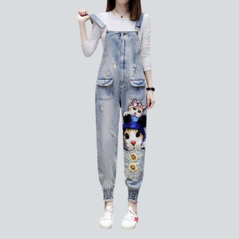 Introducing our streetwear-style Ornamented Women's Denim Jumpsuit from the 2023 Spring-Summer Collection. A sartorial blend of vogue modern and nostalgic vibes. this jumpsuit will make you stand out from the crowd!