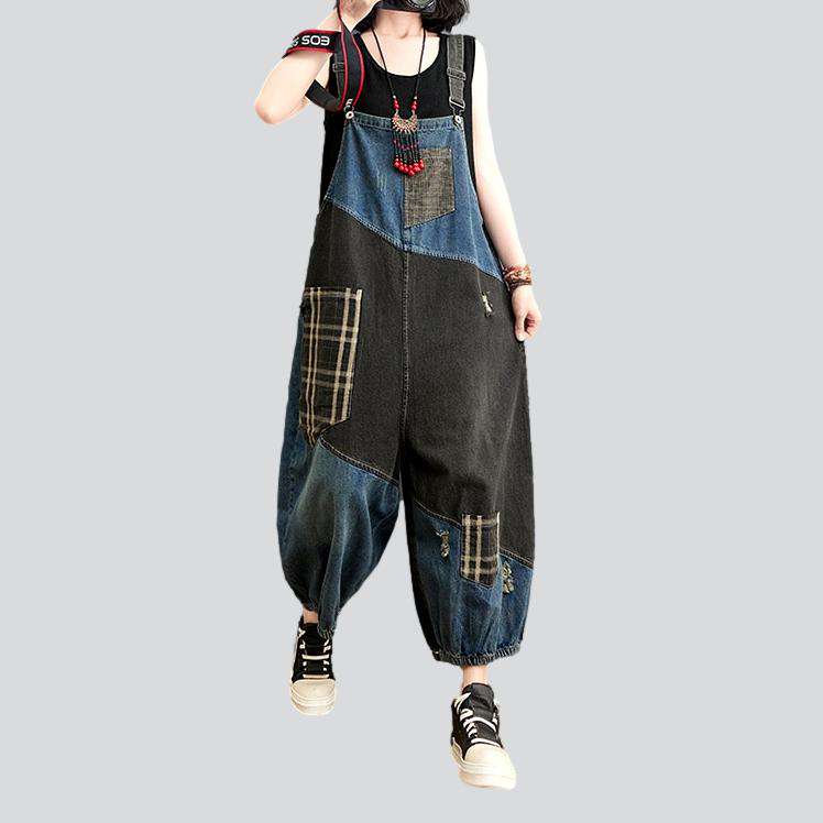 Take a trip down memory lane with our checkered pocket women's denim dungaree from the 2023 Spring-Summer Collection! This y2k-inspired masterpiece is the perfect mix of nostalgia and trendy fashion. with its signature baggy fit. an eye-catching pieced-together design. and delicate suspenders closure.