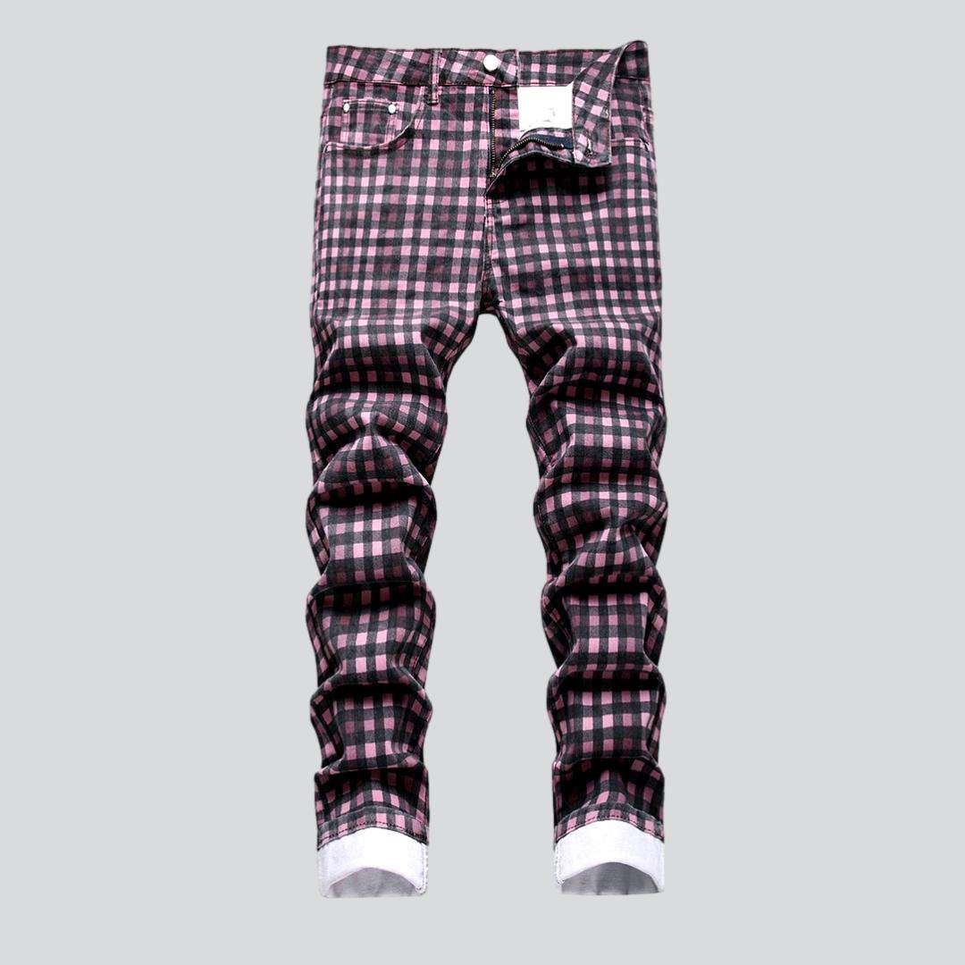 Introducing the 2023 Spring-Summer Collection's checkered violet men's jeans. a perfect blend of y2k style and modern flair!