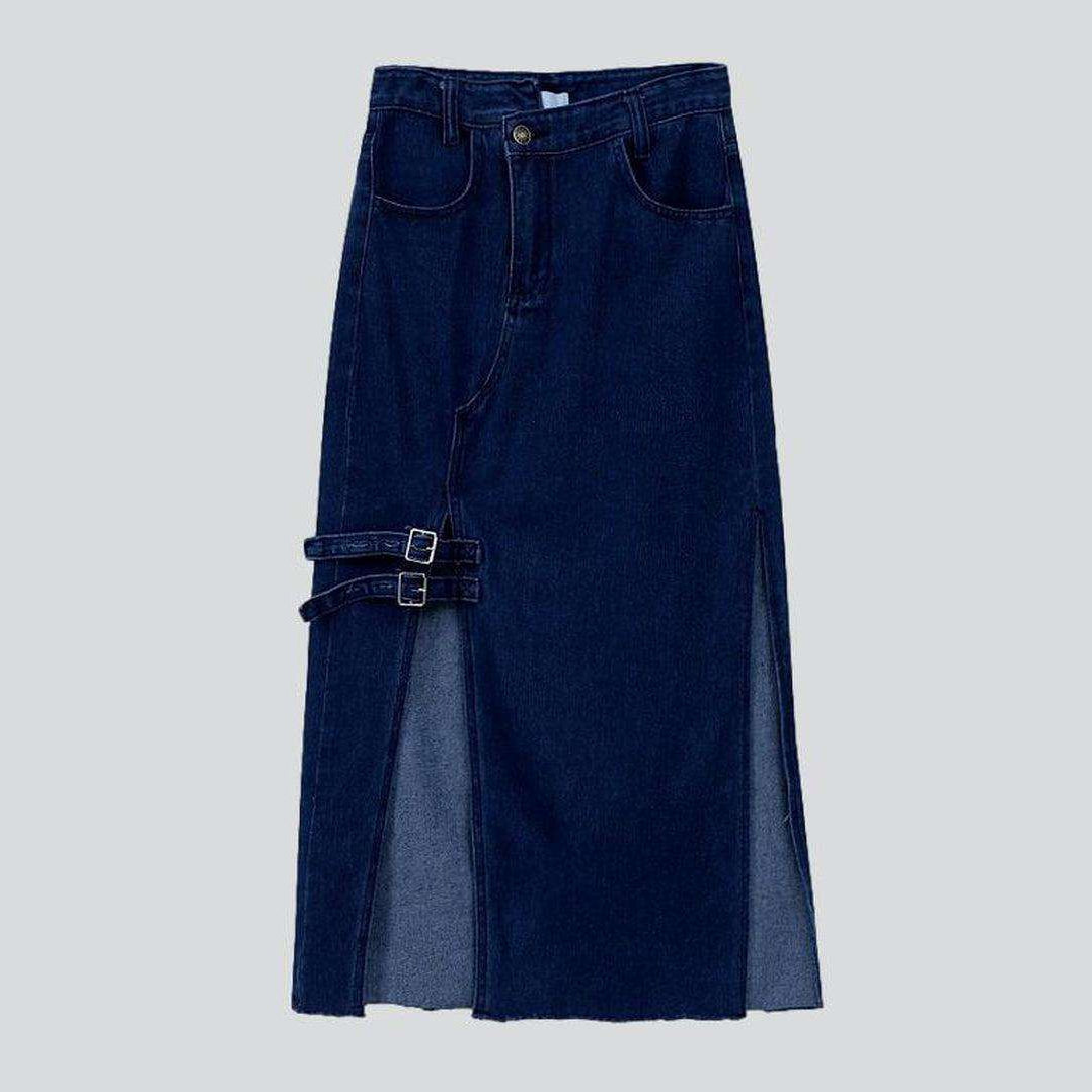 Welcome back to the Y2K era with our captivating clip-on slit maxi denim skirt from the 2023 Autumn Collection!