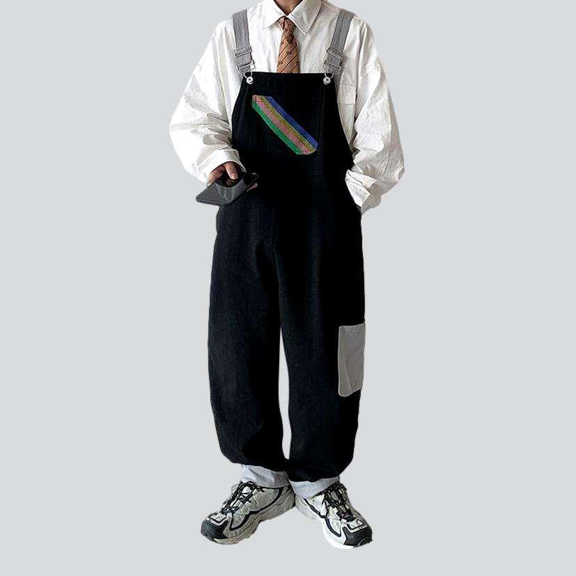 Introducing the 2023 Autumn-Winter Collection's men's baggy denim dungaree the streetwear-flair statement of the season! With its vibrant colors and patchwork perfection. you'll be turning heads and making a style statement. wherever you go.