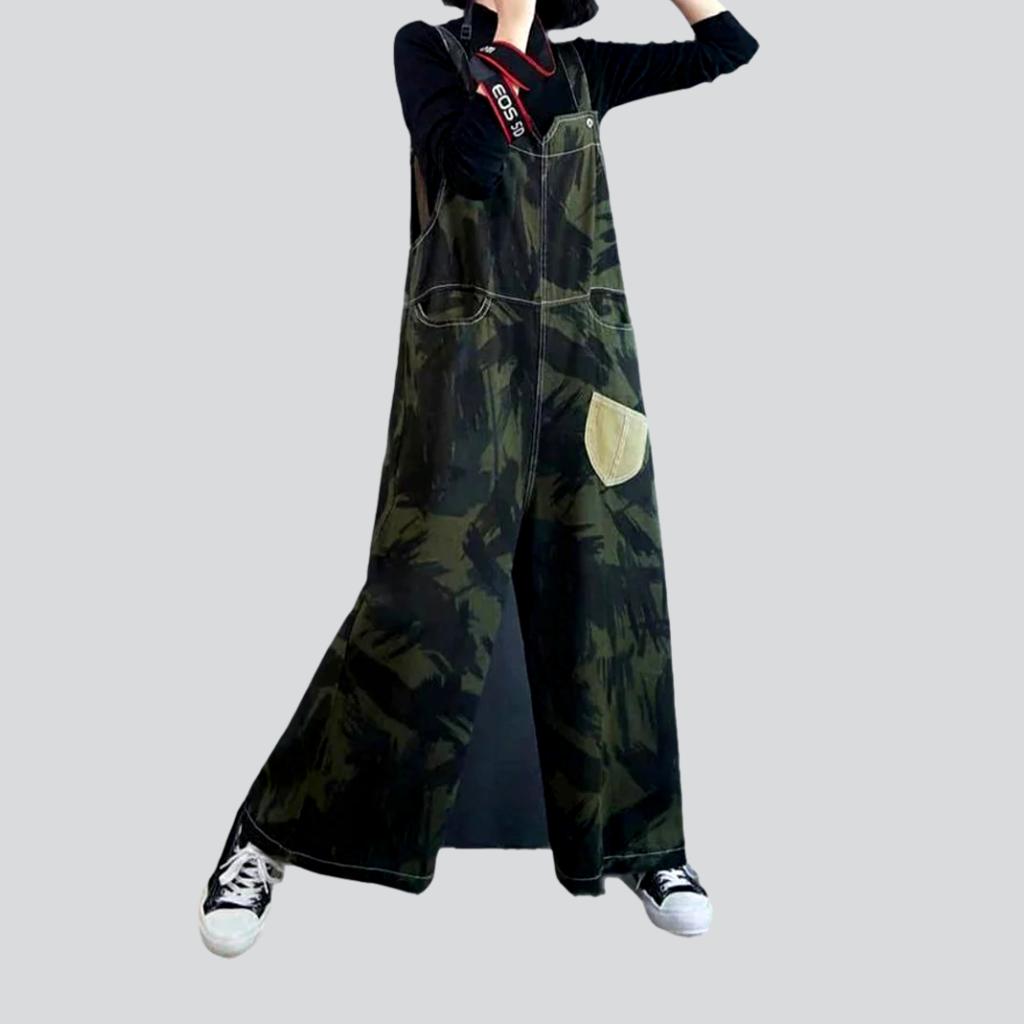 Flawlessly crafted and bathed in dark. rich colors. this jumpsuit is a harmonious blend of vintage and modern. Its baggy silhouette promises unbeatable comfort. while its painted prints and sanded finish add depth and character. The delicate interplay of suspenders with a buttoned closure ensures a perfect fit.