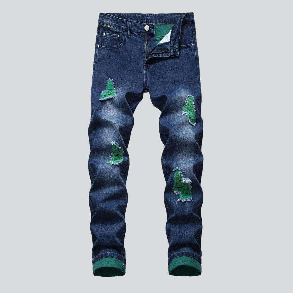 Discover the latest urban trend from our 2023 Autumn Collection with our men's frayed jeans. These slim fit jeans feature a mid-rise rise. a zipper and button closure. and stretchy fabric for maximum comfort. With its traditional denim look and laid-back shredded design. these jeans are perfect for any vogue-forward trendsetter.