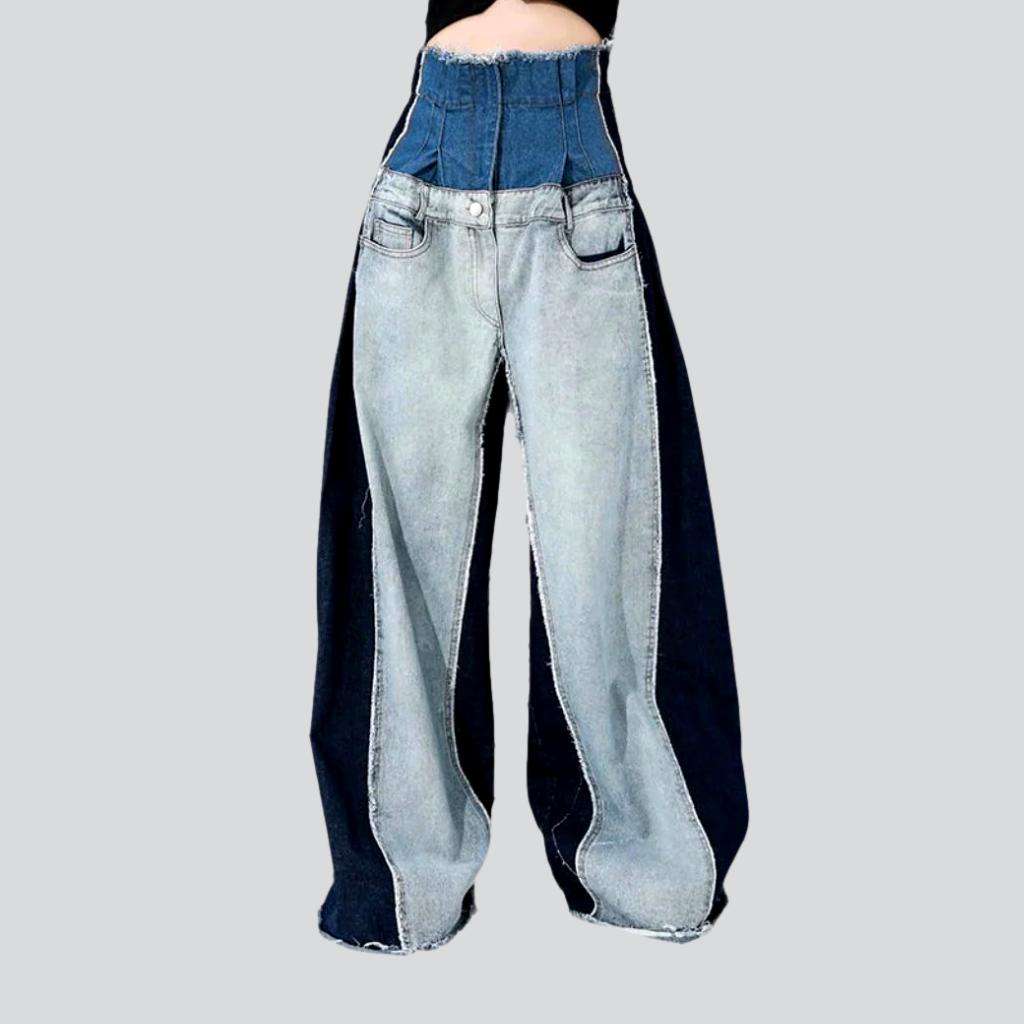 Add a dash of high-end couture to your wardrobe with the new 2023 Spring-Summer Collection of ultra-high-waisted. baggy women's jeans! Crafted with patchwork details and a distinctive waistband. these jeans are sure to make a statement wherever you go. Featuring a zipper & button closure. these jeans promise a perfect fit while also ensuring durability and unparalleled style.