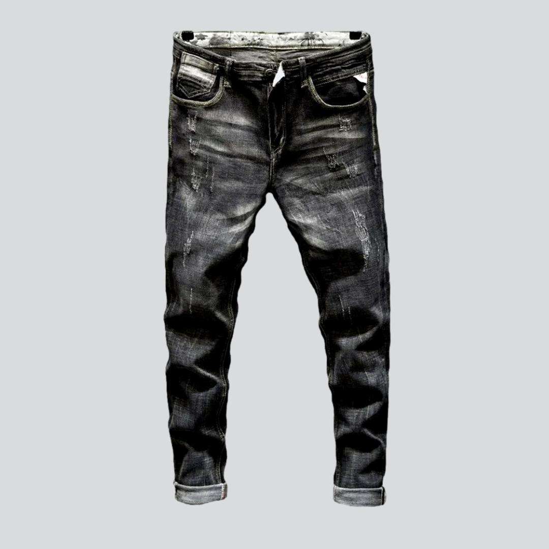 Discover the perfect blend of contemporary fashion and nostalgic grunge with our Dark Grey Torn Men's Jeans from 2023 Autumn Collection. Crafted to embody the spirit of rebellion intertwined with refined sophistication. these casual-style jeans feature edgy distressed pattern for an effortlessly cool attitude. With their mid-waist design. sleek slim fit and stretchy material. you can look chic without compromising on ease.