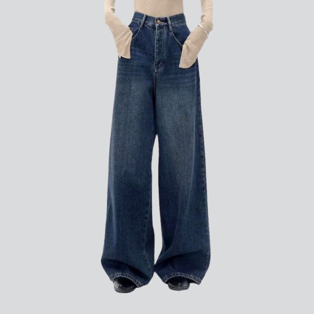 Unveil your style with our 2023 Autumn Collection Dark Wash Women's Jeans! Carefully sanded. whiskered. and slouchy for an effortless urban style. these jeans are designed with a high-waistline and zipper & button closure for the perfect fit.