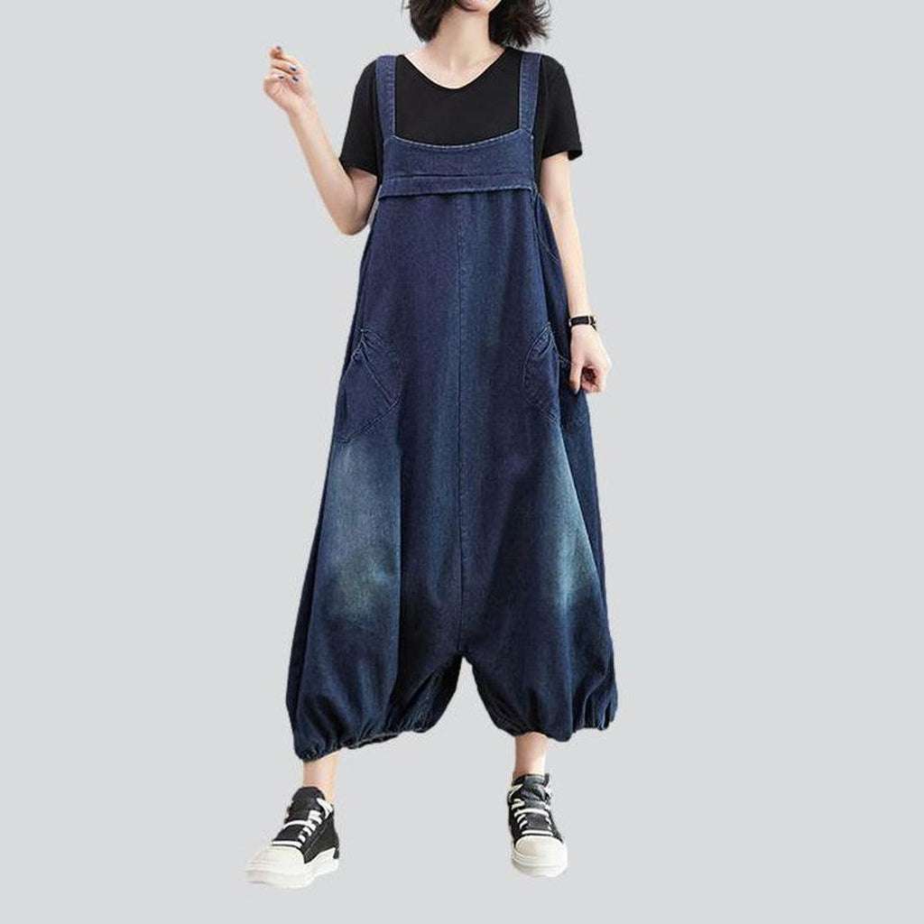 Make a bold statement with our 2023 Autumn Collection dark wash women's denim overalls - a street style to remember! These baggy. pull-on closure overalls are the perfect way to express your fashion sense and stay ahead of the curve.