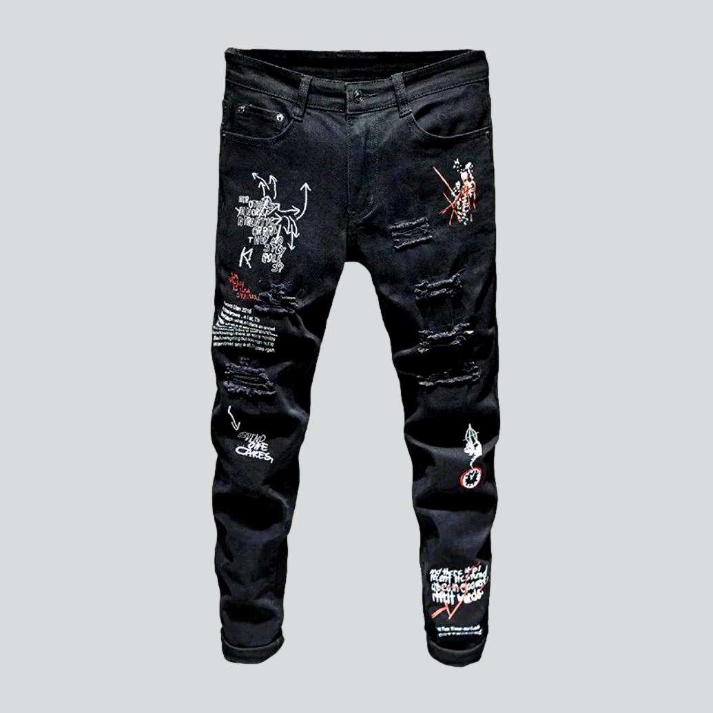Introducing our 2023 Spring-Summer Collection of men's destroyed painted jeans ââ‚?the perfect blend of street-style and contemporary fashion!