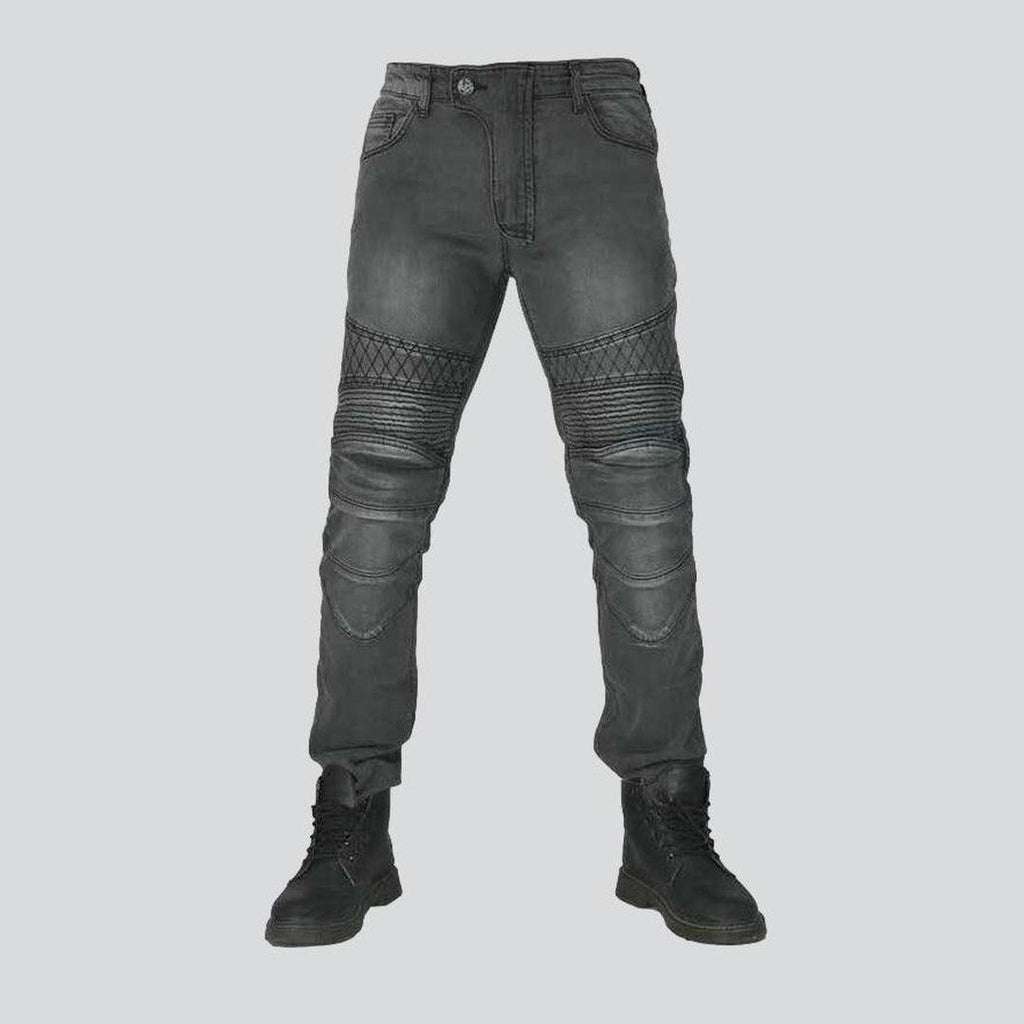 Make a bold statement in these timeless. stylish biker jeans. Perfect for any season or occasion. they're sure to be the ideal addition to your wardrobe. Look sharp and feel confident with these moto jeans. and be the envy of everyone with your unique style.