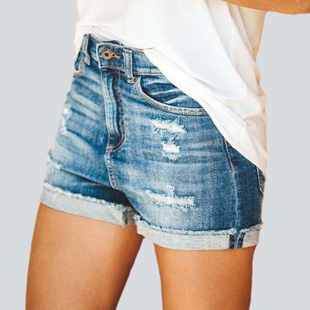 Make this summer the most fashionable season yet with our distressed jeans shorts. Whether you're hitting the beach or hitting the town. these shorts will be your go-to for expressing your unique style. So add some retro charm to your summer wardrobe—get your shorts today!