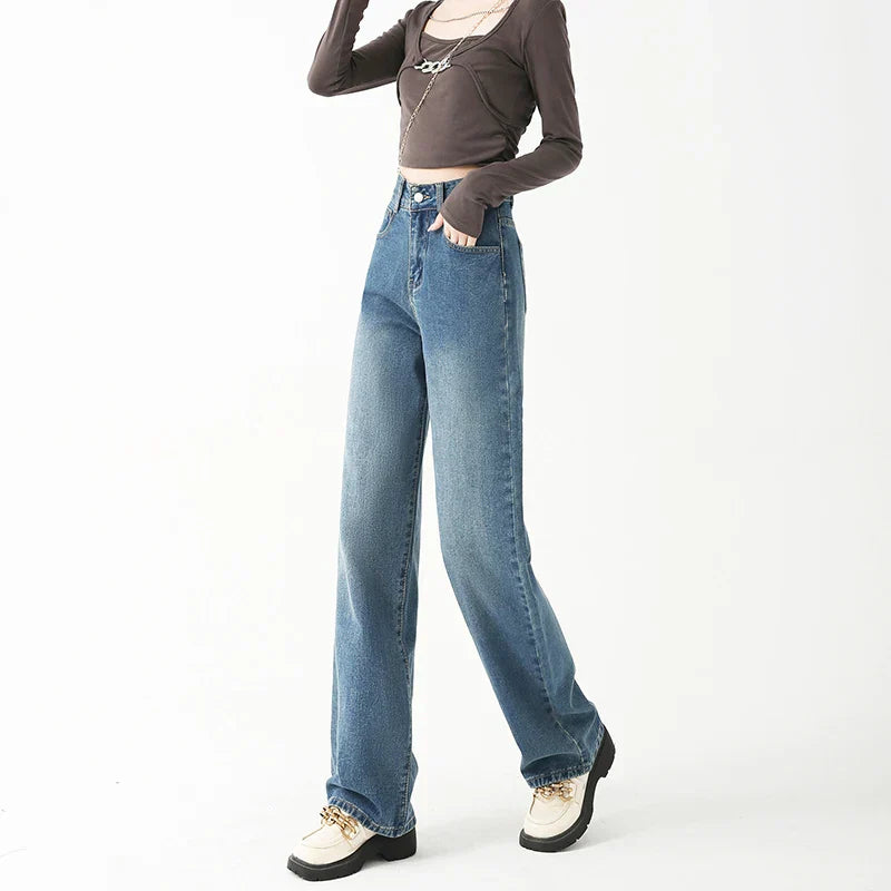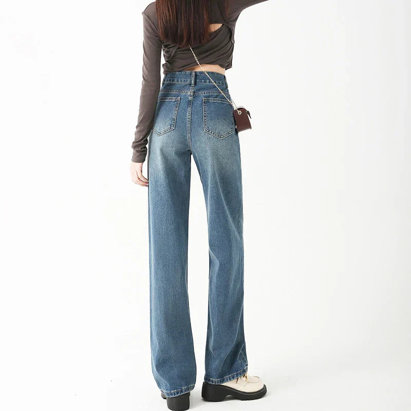 Vintage Washed Straight Loose Wide Leg Denim Jeans