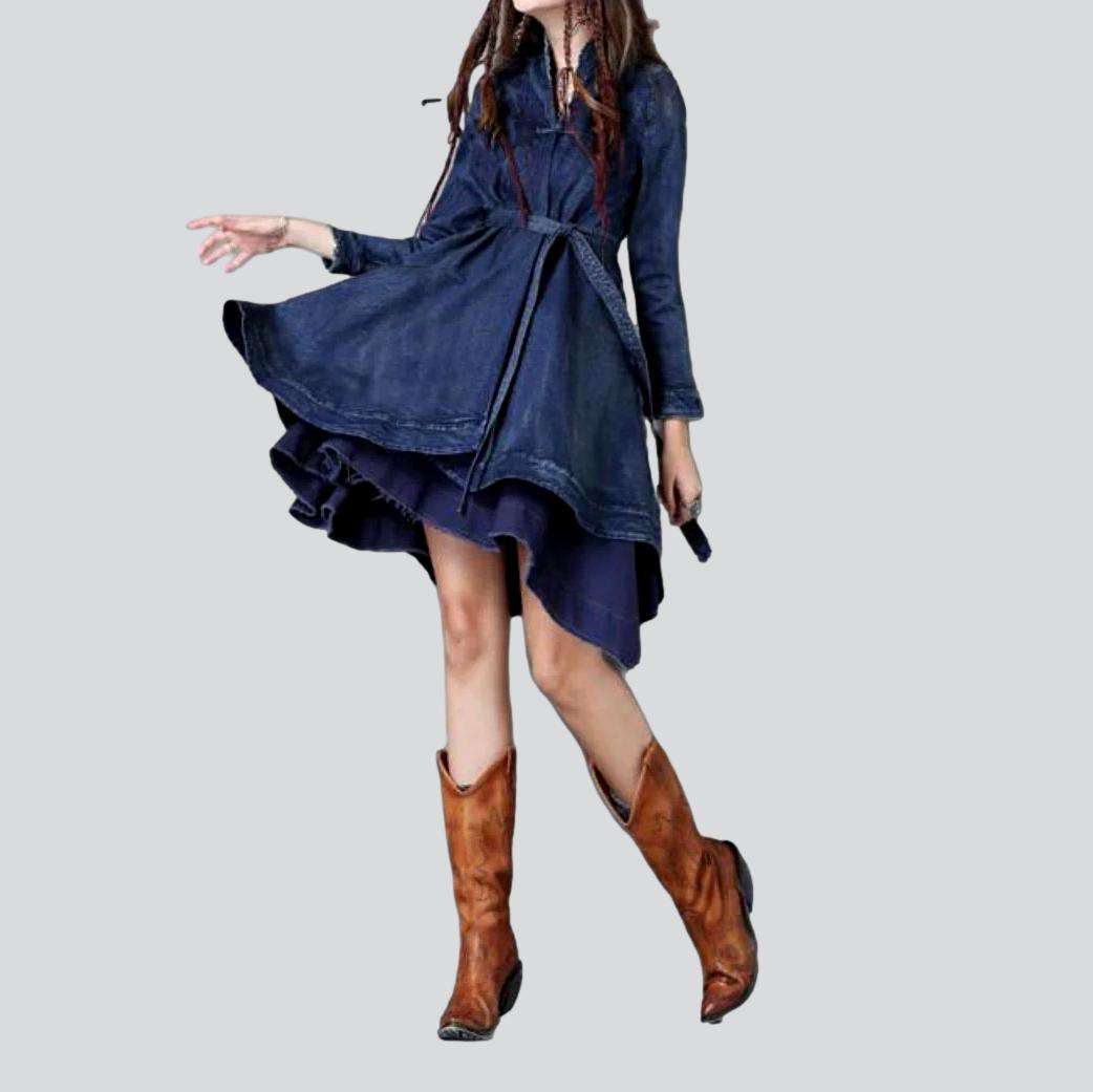 Make a statement with this enduring denim dress. Perfect for a day out with friends. a music festival. or a night on the town. you'll never be tiny on stylish textures. Whether you pair it with combat boots. heels. a graphic tee. or a delicate blouse. you'll always be the queen of the scene.