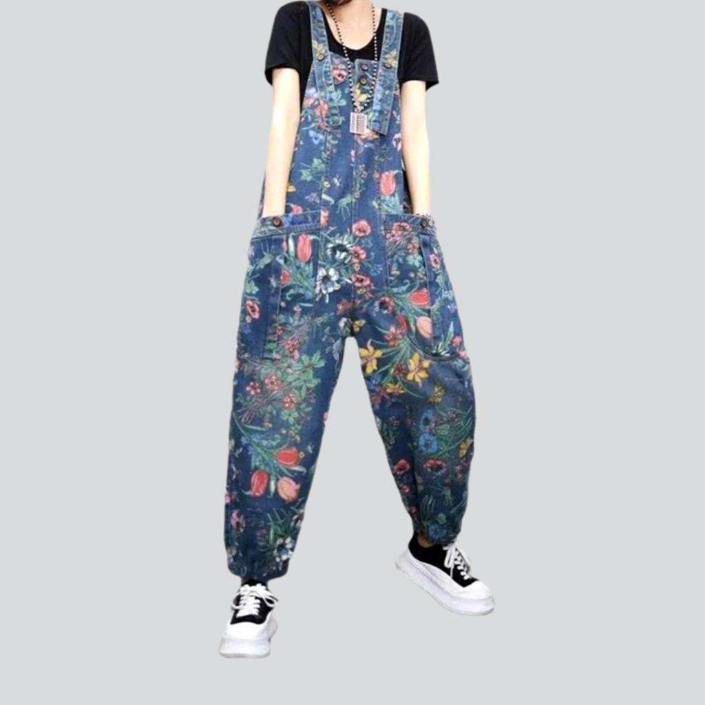 Discover the perfect combination of modern trend and Y2K nostalgia with this polished blue denim jumpsuit from our 2023 Spring-Summer Collection! With its painted prints. free silhouette. suspenders closure. and sanded finish. you'll be sure to stand out in any crowd.