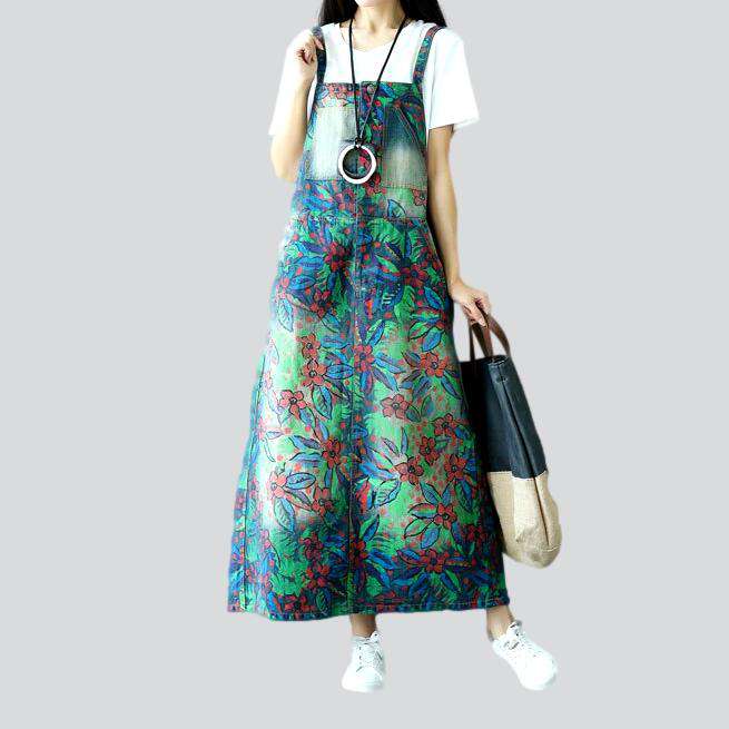 Introducing the 2023 Spring-Summer Collection's Flower Print Green Denim Dress ââ‚?the epitome of street style!
