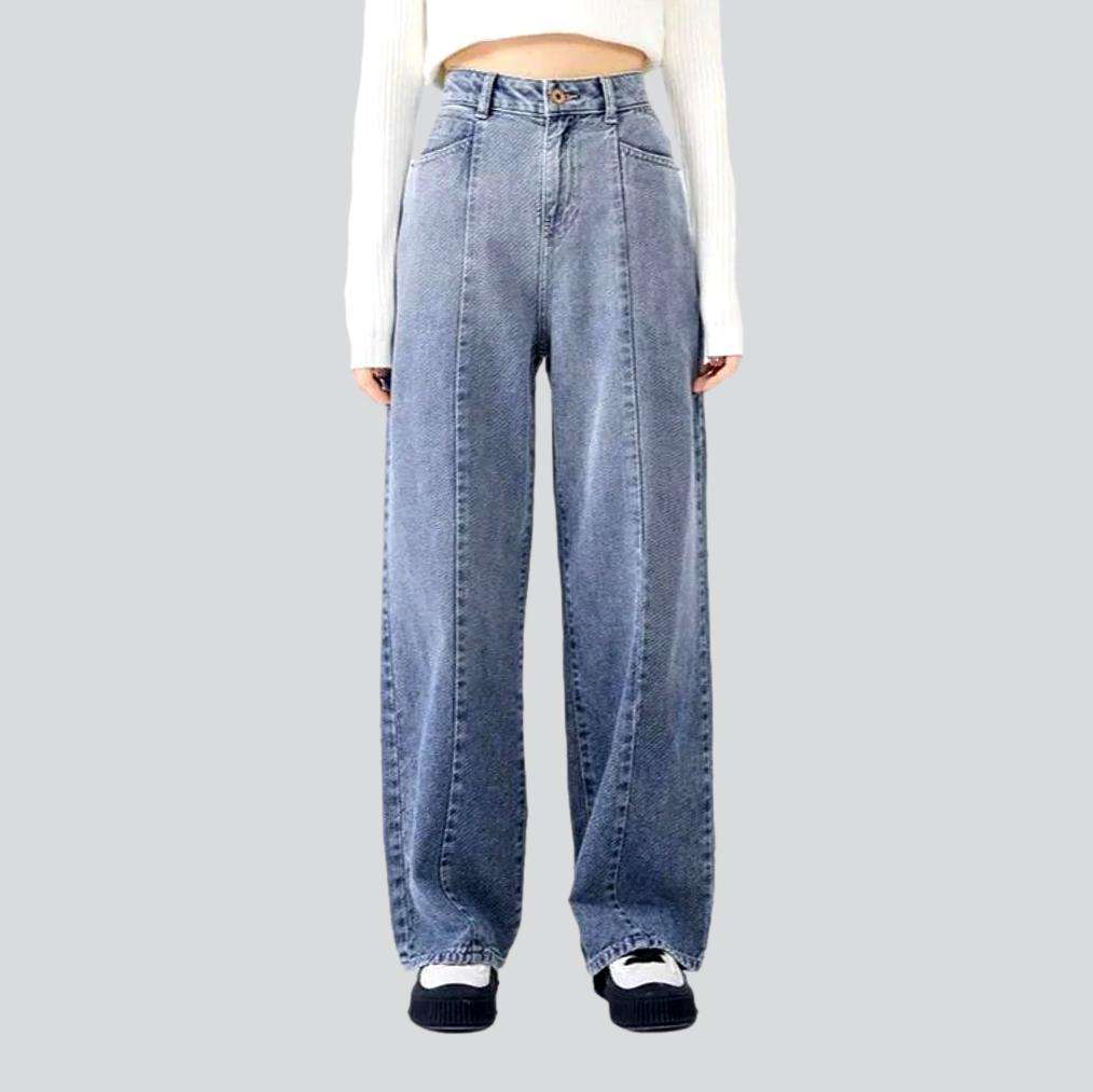 Introducing our 2023 Spring-Summer Collection of elevated-waisted. light-washed. 20th-century-style jeans! With a zipper and button closure. this stylish pair of denim is the perfect blend of comfort. style. and sophistication. Whether you're heading out for a casual day with friends or an evening gala. these jeans will be your go-to for a timeless. fashion-forward look.