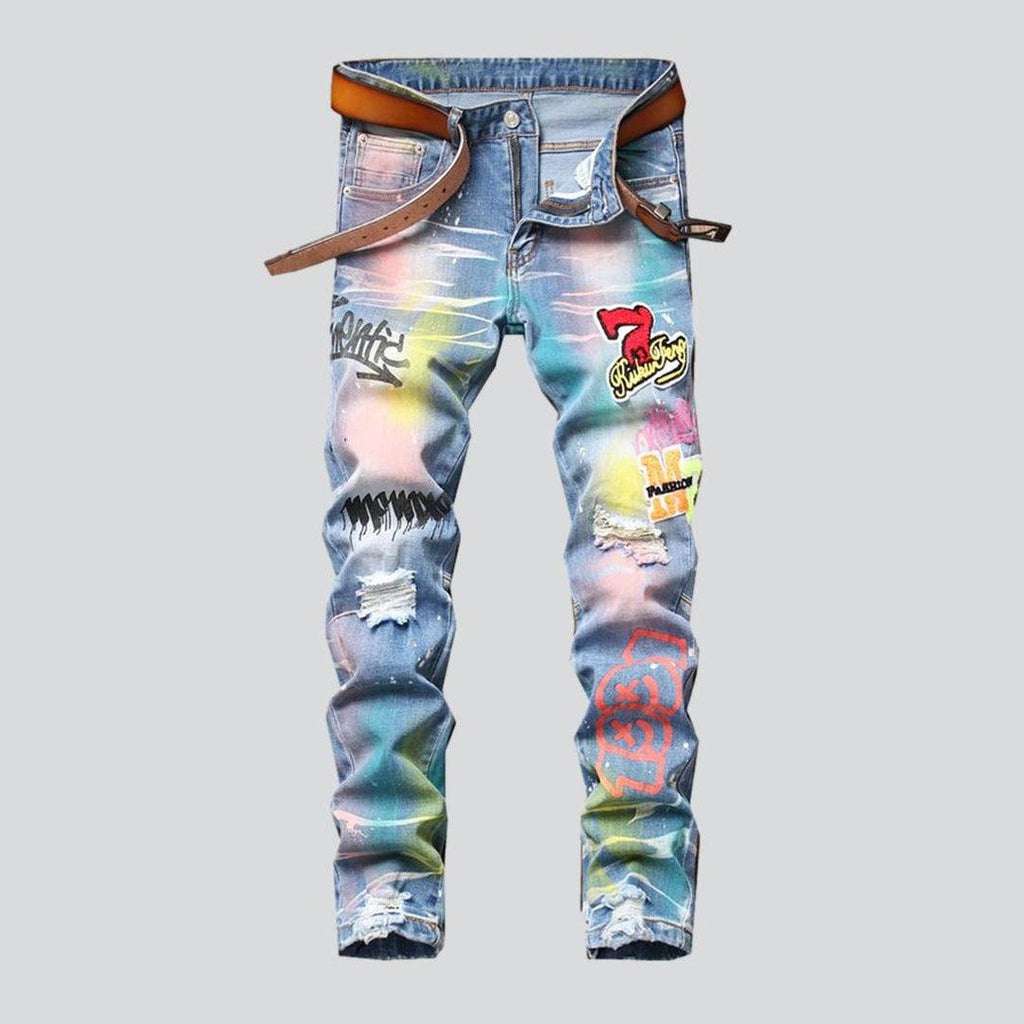 Transform your wardrobe and step into summer in mode with our graffiti-painted vogue men's jeans from our 2023 Spring-Summer Collection! This fashion-forward piece features a medium-waist silhouette with a slim silhouette. zipper & buttons closure for a casual fit. and stretchy fabric for the utmost wearing experience.