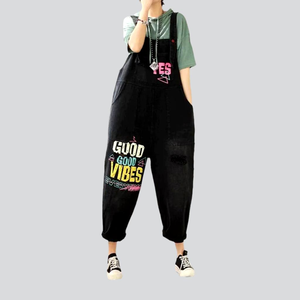 Introducing the 2023 Summer Collection Graffiti Print Baggy Denim Jumpsuit. Y2K style - a streetwear masterpiece that will make all heads turn! This fashion-forward. one-of-a-kind jumpsuit boasts a unique combination of styles that blend into one beautiful garment.