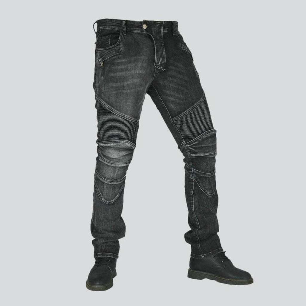 Lift your style game with these grey relaxed men's moto jeans. Perfect for any occasion. from leisurely days out to dinner dates. these jeans are the ultimate in vintage-chic vogue. Make a statement with these proven pieces and embrace the spirit of the 2023 Autumn Collection!