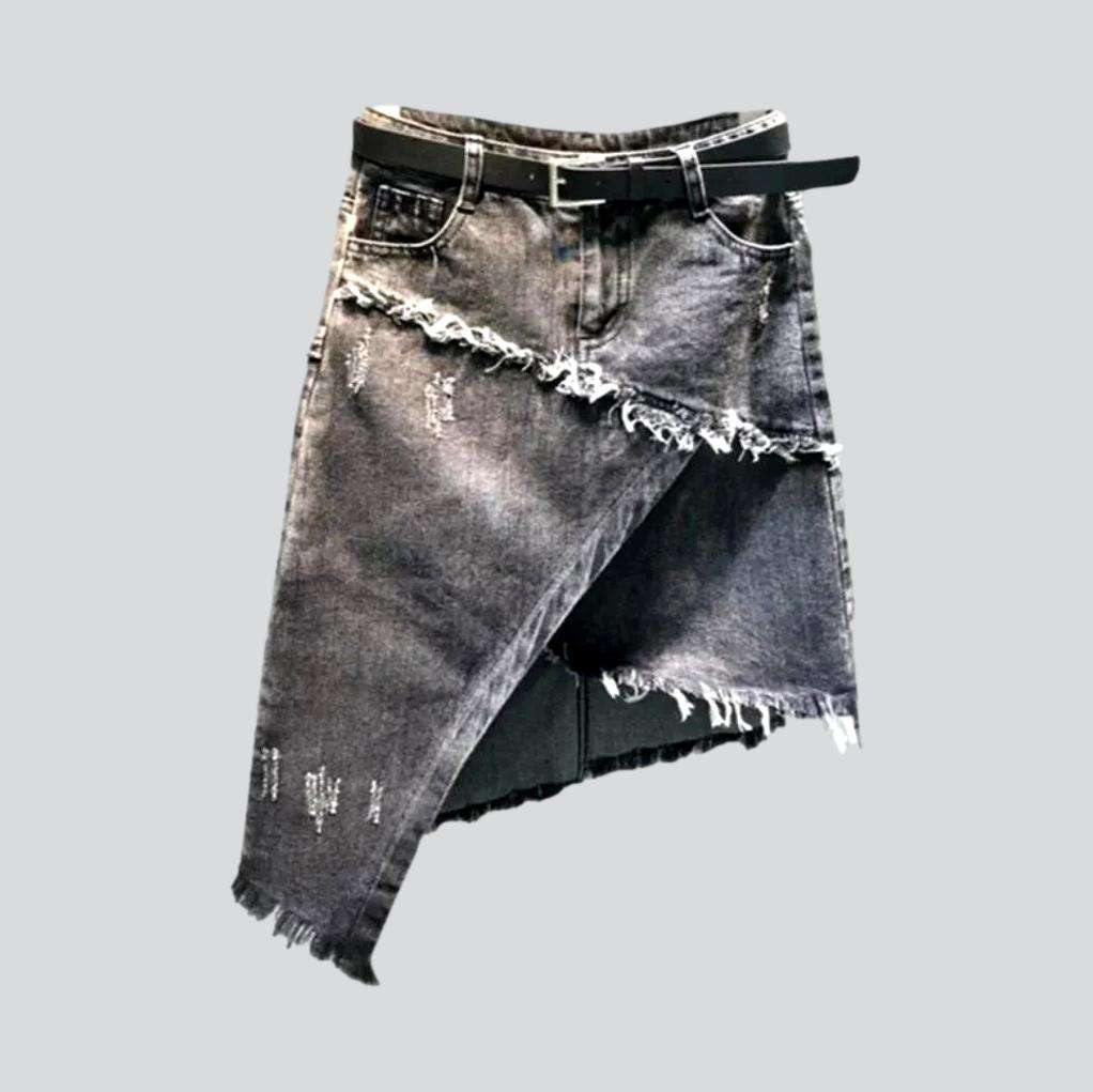 This grey layered midi denim skirt is an effortless and elegant way to make a bold statement with your summer wardrobe. It's perfect for festivals. a day out with friends. or a night on the town. and pairs well with a variety of looks. Add the final touch to your summer wardrobe with this one-of-a-kind denim skirt!