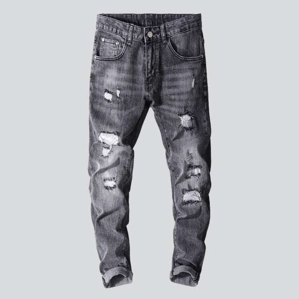 Unleash your inner wild child with our Grey Men's Damaged Jeans from the 2023 Spring-Summer Collection! Crafted with vintage allure and fashion flair. these jeans promise to take your look to the next level. Constructed from ultra-stretchy and relaxed denim. they feature a slim fit. mid-waist. zipper & button closure. and a distressed. rebellious-inspired design that will add a touch of edge to your wardrobe.