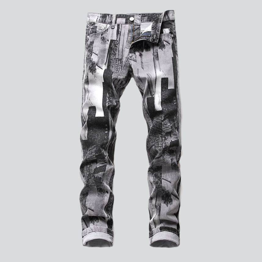 Exude effortless laid-back style with our 2023 Spring-Summer Grey Print Jeans for men. This mid-waist slim cut design is crafted with stretchy. lightweight fabric for superior comfort. Featuring a zipper and button closure. they are the perfect combination of fashion and function. and will keep you looking sharp all season elongated.