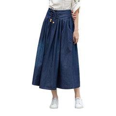 Introducing our 2023 Autumn Collection street-trend elevated-waisted long denim skirt ââ‚?textured to make a statement! Crafted with an iconic damaged pattern. medium wash. fit type and flare silhouette. and rubber closure. this piece is the perfect blend of sophisticated vibe and effortless chic.