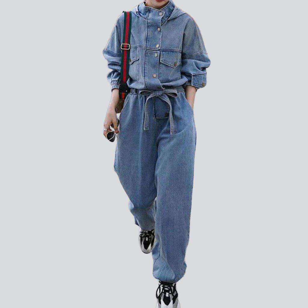 Hooded baggy women denim overall