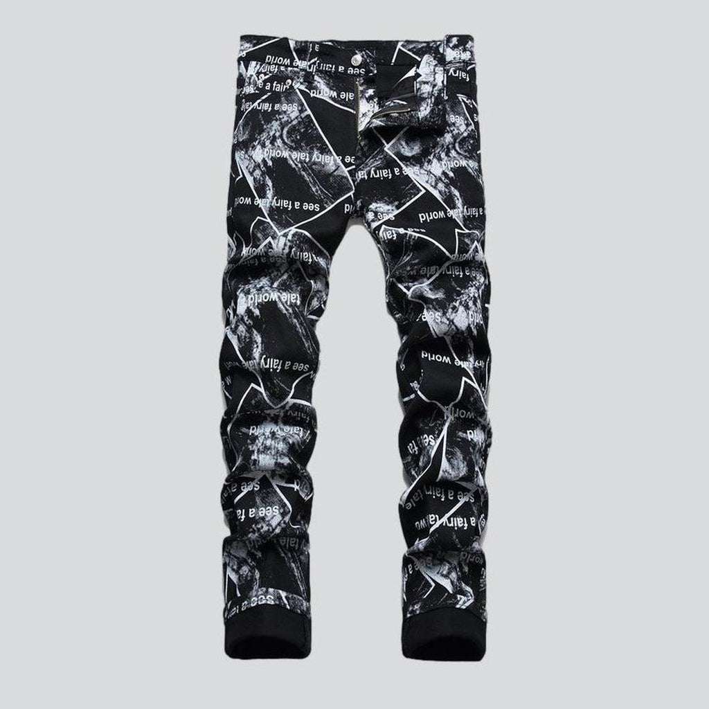 Welcome to the world of Y2K vogue with 2023's Autumn Collection! Dare to be distinctive in this stylishly painted black men's jeans. designed with slim-fitting mid-waist silhouette and stretchy fabric for maximum comfort. Featuring a classic zipper and button closure. these jeans will surely be the most cherished pieces in your wardrobe.