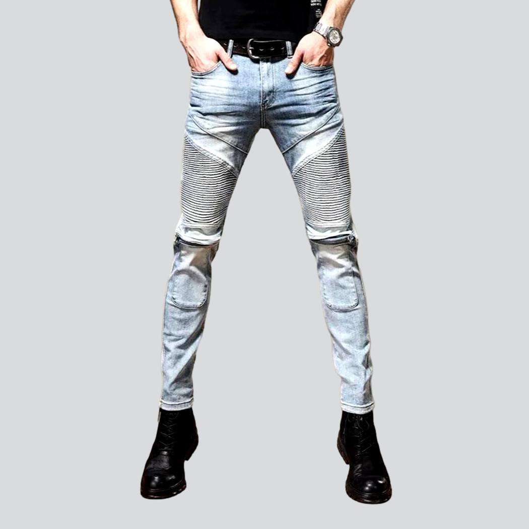 • Classic Biker Style: With a traditional light wash and conventional biker design. these jeans will never lose their charm.