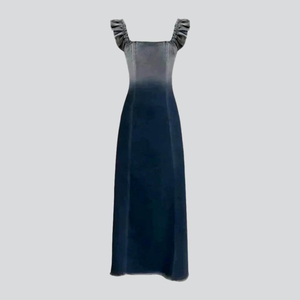 Introducing our Urban-style. Dip-dyed. Elongated Strapless Denim Dress from the 2023 Spring-Summer Collection make a statement with this couture-forward piece!
