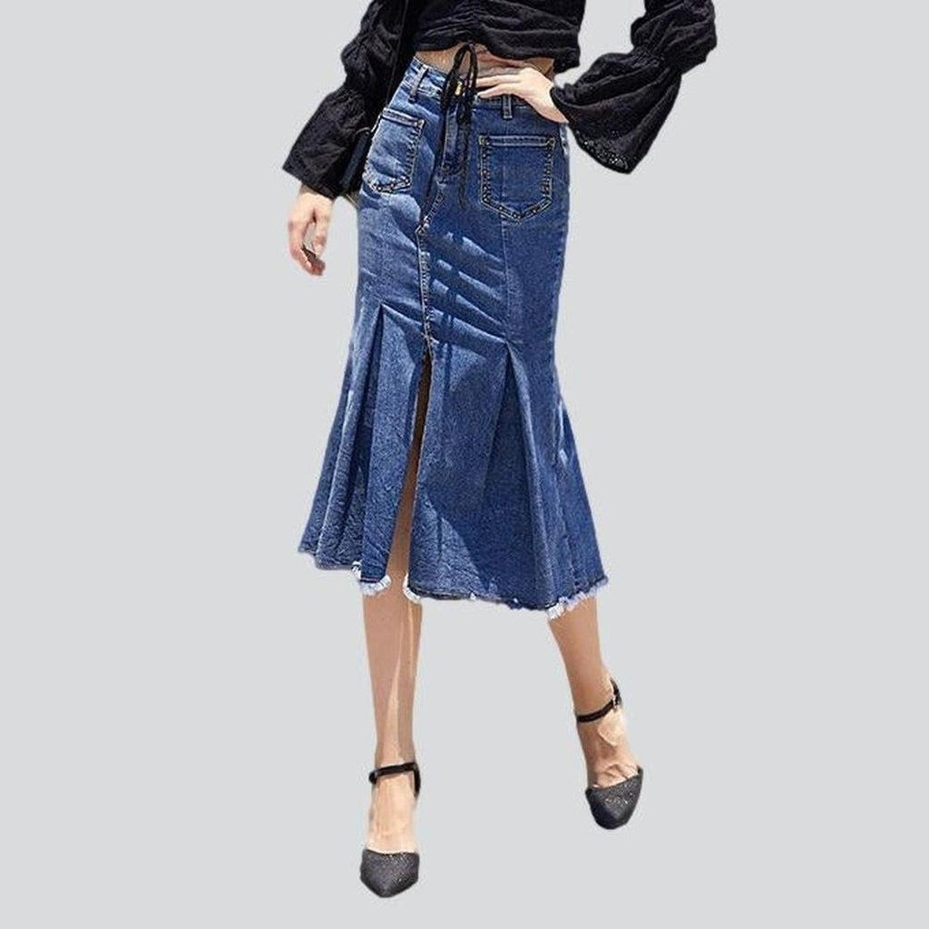 Introducing the midi mermaid women's denim skirt from the 2023 Summer Collection ââ‚?the pinnacle of edgy-vibe with a touch of stretch!