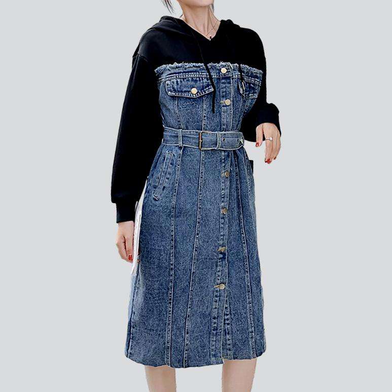 Make a style statement this season with our Mixed-Fabric Hooded Denim Dress. Its distinctive features will ensure you stand out from the crowd. Wear it to a music festival. a day out with friends. or to your next Zoom meeting ââ‚?it's versatile. stylish. and undeniably enchanting. Finally. the street-style you've been searching for. right here!