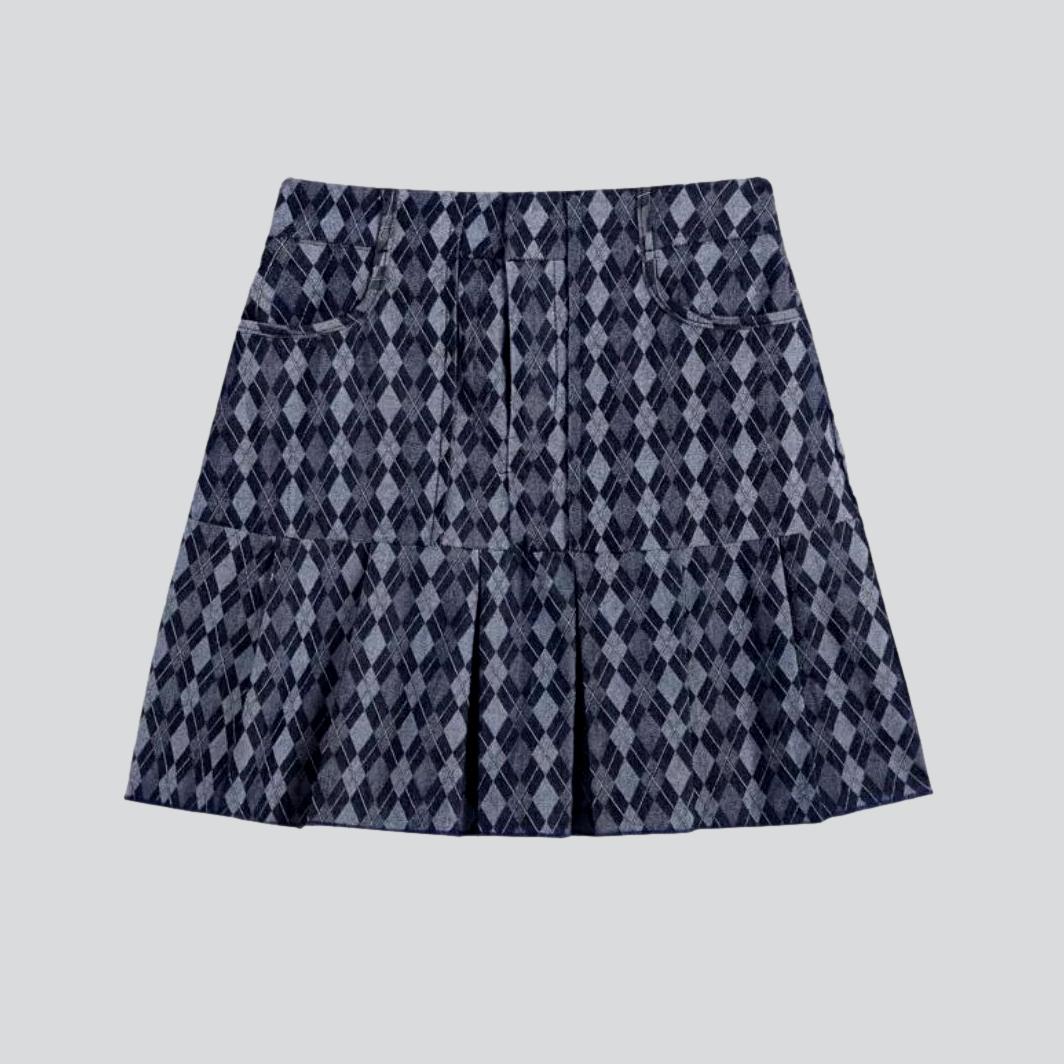 Make a flair statement with the 2023 Spring-Summer Collection's Ornament Print Skater Denim Skirt! This mid-waist. urbane-style design oozes with Y2K nostalgia for a look that is timelessly chic.