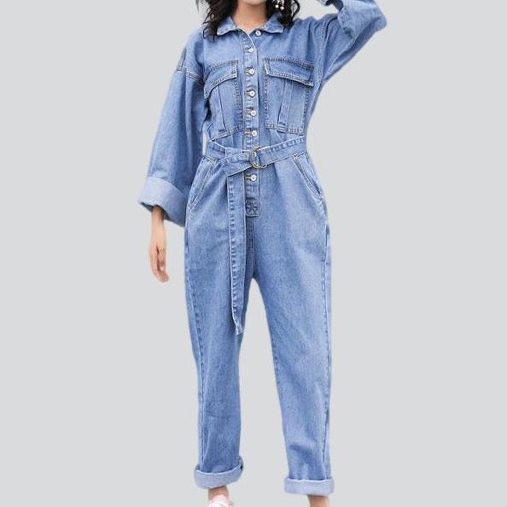 Introducing the 2023 Spring-Summer Collection's roomy full-length sleeve denim overalls. a 90s-inspired statement piece that is sure to make heads turn!